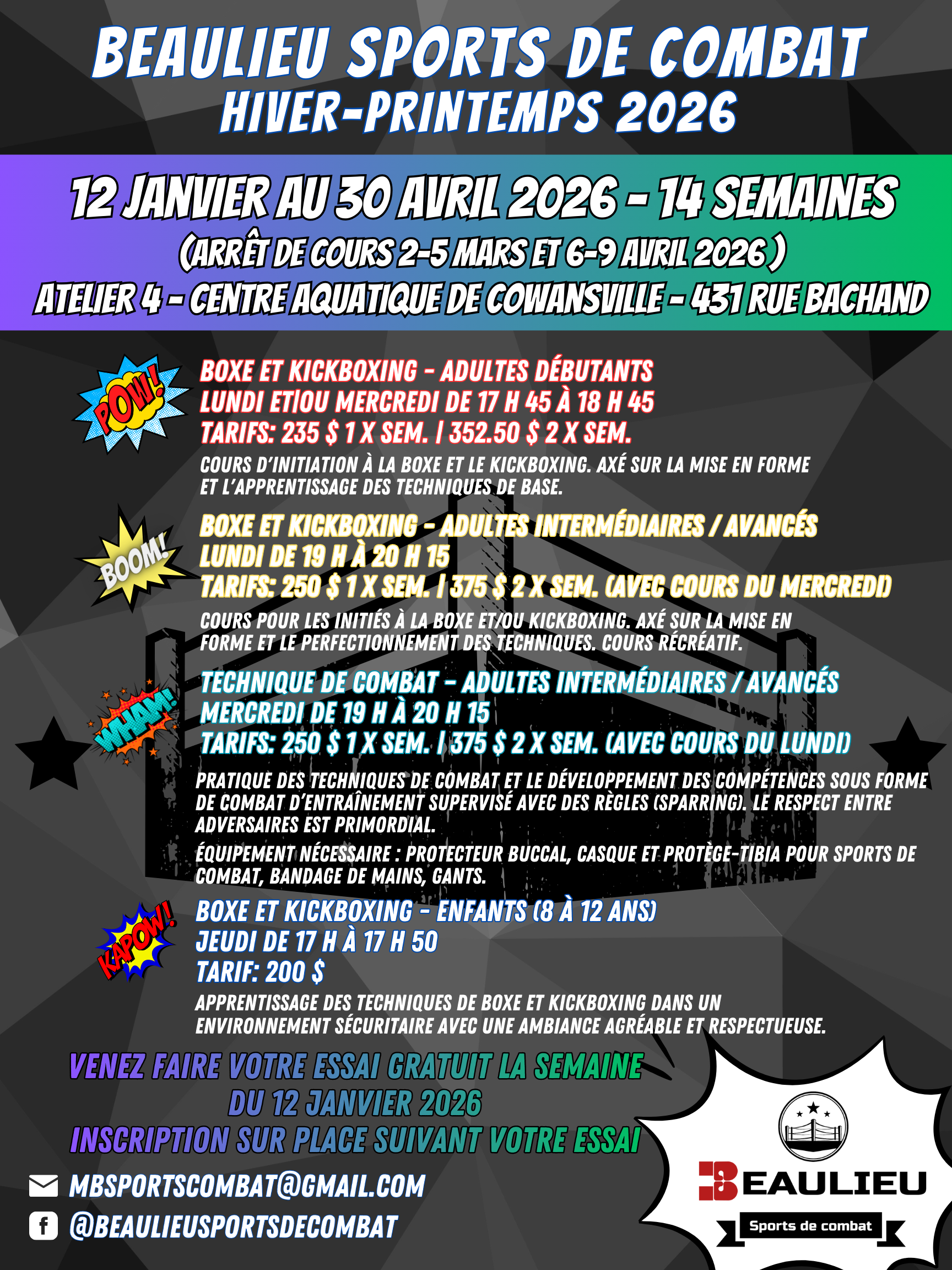 mbsportscombat@gmail.com | Facebook : Beaulieu Sports de combat
